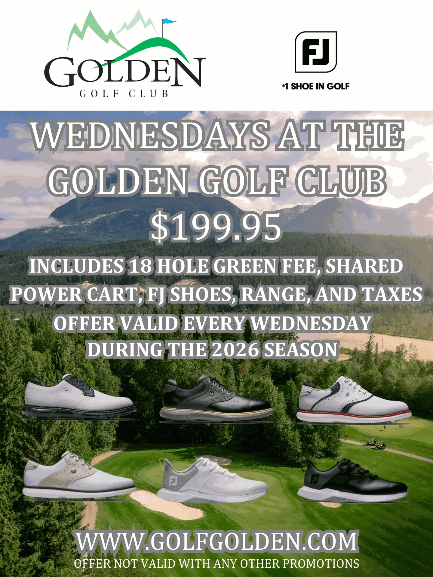 The Golden Golf Club is pleased to announce our “All You Can Play – Everyday” Special. That’s right you can now play as many holes as you like each day for one low green fee price. Incredible value! Why pay to just play 18 holes as you do at most other courses, when you can play 27, 36 or as much as you like everyday at the Golden Golf Club. We have always been known for exceptional value and once again we lead the way!